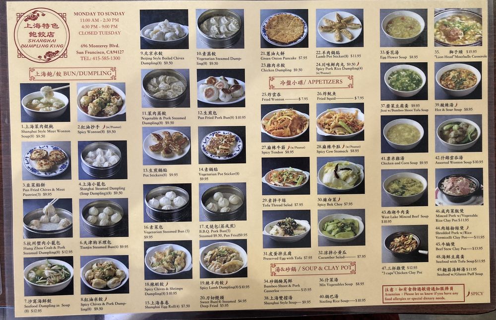 Welcome to Shanghai Dumpling King, a culinary gem located at 696 Monterey Blvd, San Francisco. Known for its authentic flavors, the menu showcases a delightful array of dishes that celebrate Shanghai's rich culinary heritage.