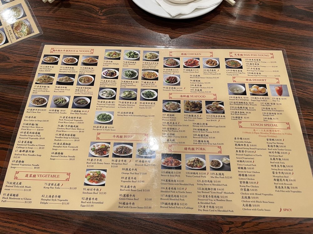 Start your meal with savory appetizers like the Shanghai Drunken Chicken and Salt Duck, both priced at just $6.25, or opt for the Spicy Tendon, a tantalizing choice for a bold palate at $11.95. The soups are equally enticing, featuring options such as the comforting Egg Flower Soup for $10.95 and the hearty Lion Head Meatballs Casserole for $18.95.